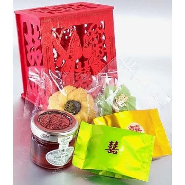 1)囍茶包一雙+曲奇囍餅一對+蜜糖1樽或果醬1樽<2選1>:(可選味道或代為渾配)